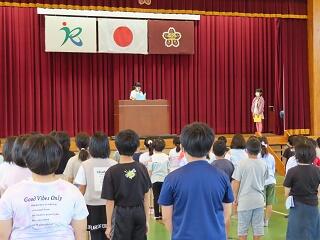 今日で1学期前半が終わります。子どもたちは勉強に、運動に、行事に、、朝のボランティアなども含めて、本当によくがんばりました。明日からは34日間の夏休みですが、夏休みにしかできない体験をたくさんし、いろいろなことにチャレンジして、その学びを1学期後半につなげていってほしいなと思います。感染症や熱中症などこれからも注意が必要ですが、健康で安全な夏休みになるよう1人1人、気をつけてほしいと思います。