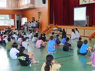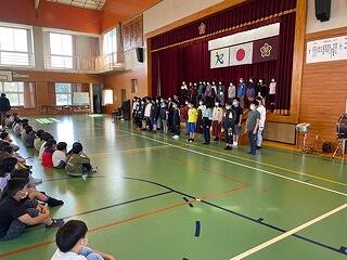 記念イベント(野尻小クイズ〇×ゲーム)の様子