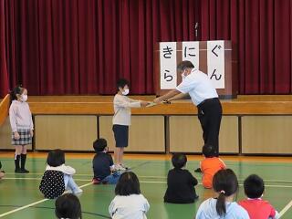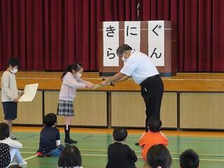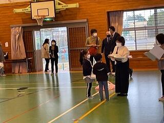 体力テスト「A」判定者28名を代表して、6年生の代表児童が表彰されました。