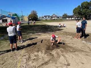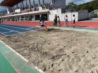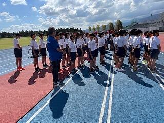 10月21日(金)6年生は小林市総合運動公園陸上競技場で陸上記録会に参加しました。野尻町内の栗須小学校、紙屋小学校と3校で行いました。長距離走、ソフトボール投げ、走り幅跳び、100m走、50mハードル走、400mリレーに出場しました。野尻小の子ども達は、運動会終了後これまで一生懸命練習してきた成果を発揮し、たくさんの種目で自己ベスト記録を出すことができたようでした。中でも、最後に行われた400mリレーでは男女ともにアベックで1位をとり、男子は県標準記録57.0を大きく超えることができました。本日の記録会の結果を小林市内のすべての小学校でもちより、各種目8位入賞者に賞状が手渡されるようです。野尻小学校の子ども達は、応援する態度も素晴らしく、野尻小だけでなく、他の学校の子どもたちにも声援をおくっていました。野尻小学校の代表として、「流石(さすが)!野尻小!」と思われるパフォーマンスをしてくれました。本当によくがんばりました!応援していただきました保護者の皆様、ありがとうございました!