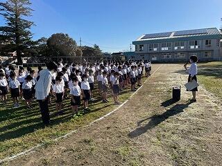11月1日(火)、今日から持久走練習が始まりました!低学年はトラックの内側、高学年は外側を走り、朝の時間に5分間走り続けました!それぞれの目標に向かって1か月間、朝の時間や体育の時間、昼休みなどに走り続け、11月24日の持久走大会でベストな走りができるといいなと思います。みんながんばってください!持久力を高め、病気に負けない強い体を作ってほしいと思います。