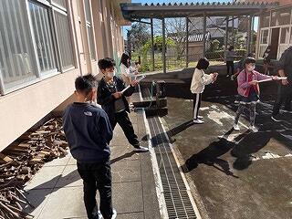 10月25日(火)、4年生は理科の授業で、空気でっぽうに空気や水をつめて玉をとばす実験をしていました。