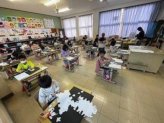 6年生は国語科「私と本」で、ブックトークのテーマを決める学習をしていました。先生の話に耳を傾け、楽しそうに学ぶ姿が見られました。