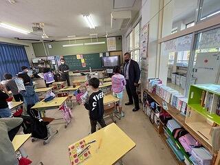 11月7日(月)小林市教育委員会教育委員学校訪問がありました。本校に教育長、教育委員、教育委員会の皆様10名でおこし頂きました。訪問ではまず校長より学校経営説明をし、説明に対する質疑や意見等をいただきました。今後のよりよい学校経営につながる貴重なご意見をたくさんいただきました。その後は1年生から順に授業を参観して頂きました。どの学年も児童、先生が一生懸命授業に臨んでいる様子をみていただきました。タブレットを活用する場面もみていただきました。授業を参観して頂きながら施設面についても確認して頂きました。たくさんのご示唆をいただくとともに、子どもたちや学校のことをたくさんほめてもいただきました。今日の訪問をもとに、さらに目指す学校像に向かってみんなで力を合わせて前進してまいりたいと思います。教育委員会の皆様、本当にありがとうございました。
