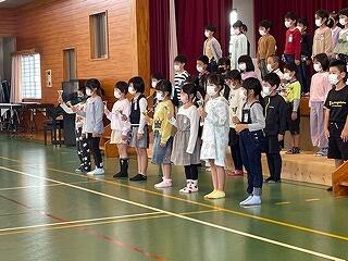 中学年の合唱(怪獣のバラード)と合奏(茶色の小びん)の様子