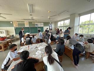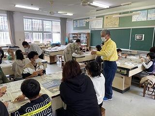 6年生は地層のつくりについて写真を見て気付くことを考えていました。