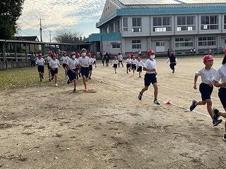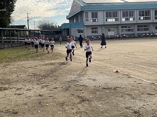 少々、寒い朝の時間でしたが、自分の目標に向かって5分間走り続けることができました。走り終わると、「今日、何周走った?」「ぼくは5週!」「わたしは6週!」などお互いの走りを比べる様子が見られました。校内持久走大会まであと10日となりました!去年よりもいい走りができるように、みんながんばってほしいと思います!