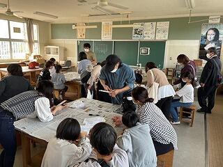 1年生は拾ってきた落ち葉をトレーシングペーパーに写し取る学習をしていました。紙に葉脈等が浮き出て、とても感動していました。