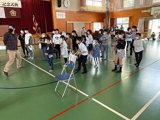 2年生はレクレーションをしていました。ルールを守って、楽しくいす取りゲームに取り組んでいました。