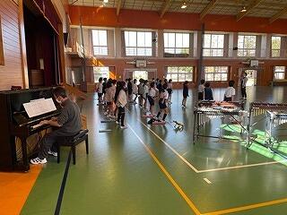 体育館で音楽大会の練習をしていました。パートに分けて練習するなど本格的でした。