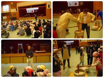 例年、収穫祭として「餅つき」を行っていましたが、新型コロナウイルス感染症の状況に鑑み、今年は下学年児童のみ参加して、収穫感謝集会を行いました。