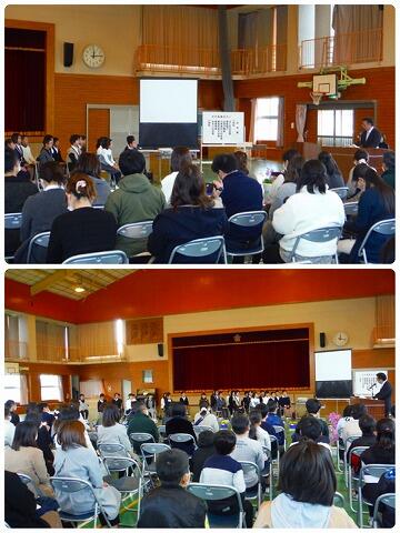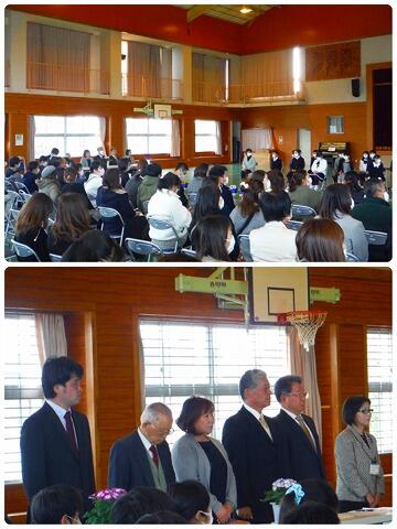 3月30日(火)、今回の定期異動に伴い7名の職員が転出することになりました。転出する職員から、野尻小の子ども達の良いところやこれからも頑張って欲しい事等、話がありました。