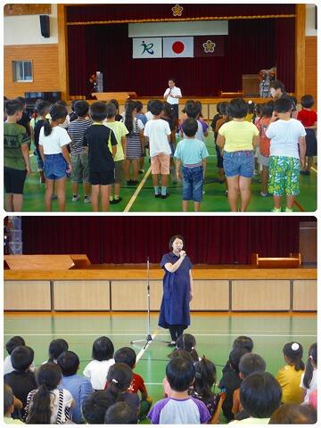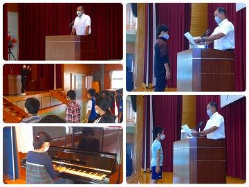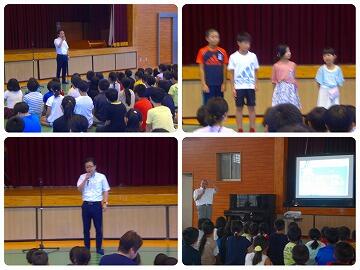 2名の児童が1学期を振り返って、頑張ったこと、できなかったこと、これからもっと良くしていこうと思っていることを発表してくれました。校長先生から、何も見ずに自分の言葉としてみんなの前で発表した言葉はとても心に響いたと言うこと、みんなの前で正直に伝えた心の強さに感動したこと、とても凄いことだとお話がありました。