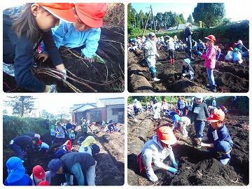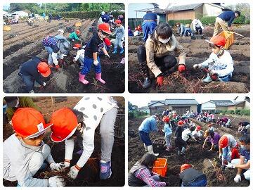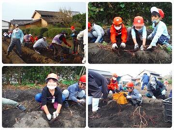 営農組合の方々やJAこばやしの方々にご指導いただき、サツマイモの苗の植え付けや田植えから収穫まで楽しく活動することができました。