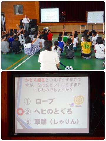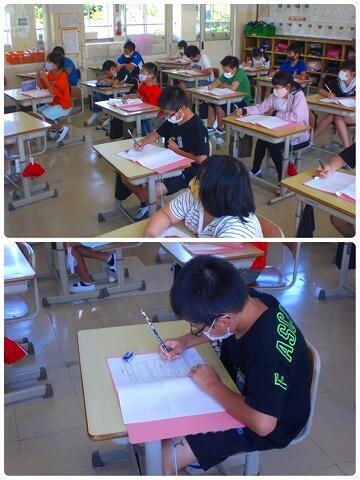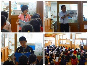 全校集会では校長先生から野尻地区へ沖縄から疎開してきていた方々のお話等がありました。今、平和に過ごすことが出来ている子どもたちにこそ昔あった戦争体験のお話は、平和なことがどんなに幸せなことか、平和に過ごせるためにどうすべきなのか考える為にもとても大切なことだと思います。