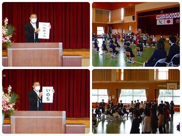 まず、校長先生から「新型コロナウイルス感染症の予防を継続すること」と「自分で正しいと思ったことを積極的に実行すること」についてお話がありました。