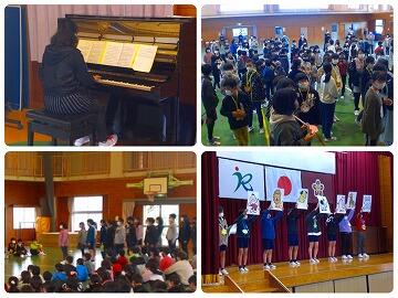 3月5日(金)お別れ集会を行いました。在校生から6年生へ、歌・演奏・ダンス・お祝いのメッセージなど、お別れの寂しさや感謝の気持ちがいっぱいつまった発表がありました。6年生は、その発表に対するお礼の気持ちを込めて、「さくら(独唱)」を歌いました。 また、運営委員会が企画した、○×クイズと記憶力クイズに児童はとても喜び、楽しんでいました。
