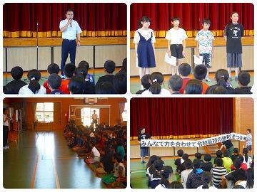 校長先生から、1学期の目標を再確認して、残り1ヵ月で達成できるようがんばってほしいというお話がありました。