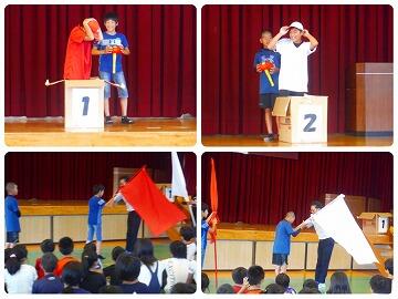 また、11月の目標について、体育主任からは「スポーツの秋」なのでそれぞれ運動して体を動かすようにとお話がありました。また、先週の金曜日に行われた六年生の小学校陸上体育大会について、どの児童もとても頑張っていたこと、入賞者した児童もたくさんいたことをお話されました。最後にみんなで入賞児童へ拍手を送りました。