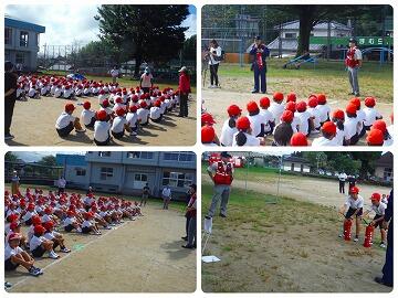 訓練終了後、野尻駐在所の井手様よりお話がありました。非常事態があった場合は周りの大人に知らせたり、非常ベル等利用して周りに知らせたりすることが大事だと、合わせて「イカのおすし」に気を付けて行動するようにお話がありました。