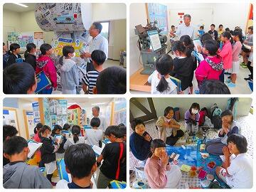 5年生は宮崎日日新聞佐土原工場にて新聞がどのように作られるのか学びました。見学後、自分たちの写真が載った新聞とクリアファイルをいただき大喜びでした。せっかくの久峰公園では雨が降っていたため遊ぶことは出来ませんでしたが、美味しく弁当をいただきました。最後にホンダロックで車の鍵の製造ラインを見学させていただきました。それぞれ遠足のしおりに分かったことや驚いたことなどたくさん書き込んでいました。