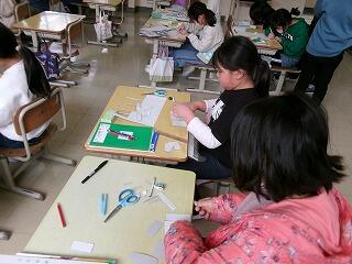 2年生は、工作用紙に長方形をいくつか書き、切り取って箱をつくっていました!集中していました!