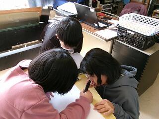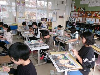 4年生は図工科の木版画の学習をしていました。黒白のインクとは別に、絵具でいろいろな色をつける2パターンで製作するそうです。工夫していますね!みんな構図がよく、上手でした!