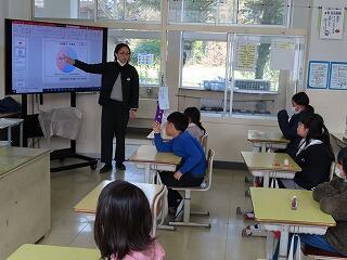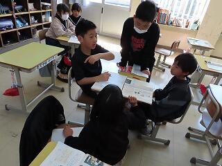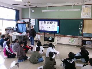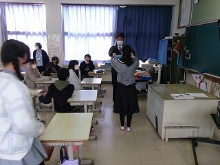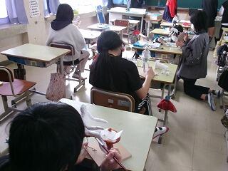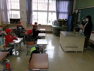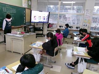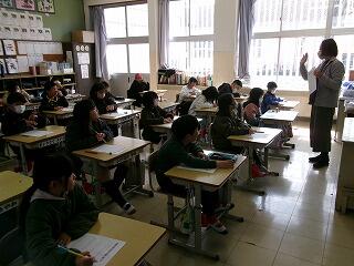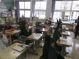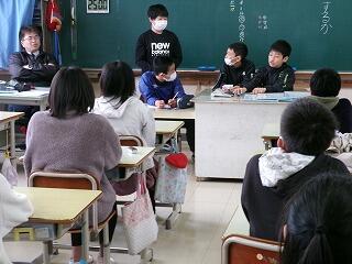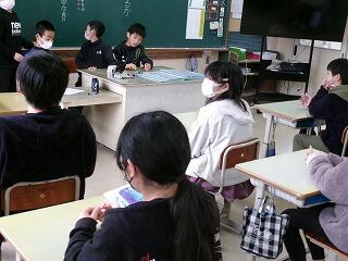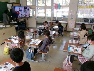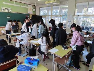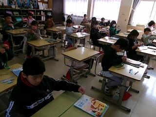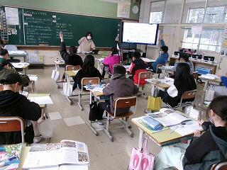 6年生は家庭科の冬の生活を工夫しようという単元の学習で、イラストを見て、どのような点を改善すれば、冬の生活が健康で快適になるかを話し合っていました。なかなかするどい意見がたくさん出されていました。