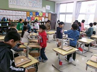 2年生は、そうじではなく、これは席替えの場面の様子です。席替えをするときの約束をしっかり聞き、友だちと協力して、机を動かしていました!新しい席にワクワクドキドキのようでした!席替えは子どもたちの楽しみの1つのようです!
