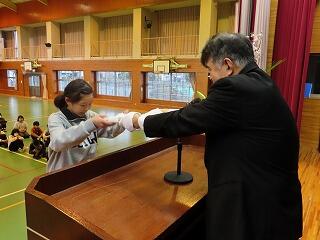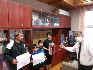 伝統の立派なトロフィーと楯、優勝の賞状、県大会出場の推薦状をみせてくれました。全校集会でも表彰したいと思います。