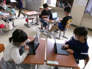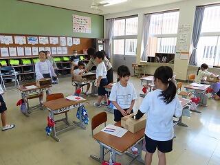 9月24日(火) 今、2年生の生活科では動くおもちゃ作りに挑戦しています。グループごとに協力して、おきあがりこぼしや風で動く車作りなど、楽しそうに活動していました。今後、完成したおもちゃをさらに工夫して完成させ、1年生を招待して遊んでもらう予定です。