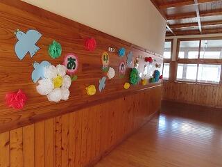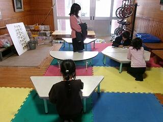 これは職員室横のふれあい広場のようです。ここには小さな机とピアノがおいてあって、雨の日などに、ここで過ごすことができます。ピアノは順番を守って交代交代に弾き、机ではお絵かきや読書をして過ごしていました!