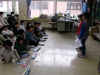 2年生は音楽科の時間でした。金曜日のお別れ集会で発表する歌の練習をしていました。歌詞を一定のリズムの中に入れるのを何回も練習していました!