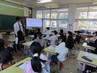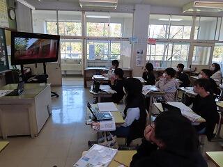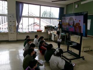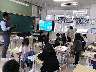 6年生は社会科の学習で「つながりの深い国々」の学習成果を発表していました。自分の調べたい国を選び、その国の産業や文化、学校の様子、日本との関係などの特色を調べてプレゼンにまとめ、友だちと協力して発表していました。発表者以外の子どもは、発表メモに聞き取ったことを書いていました。全員参加の授業が成立していました。