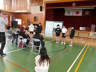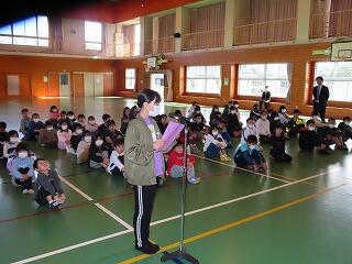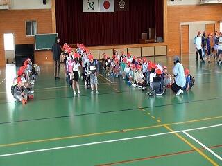 全校レクレーションで優勝したチームを紹介し、拍手をおくりました。その後、地区別集団下校しました!