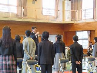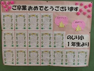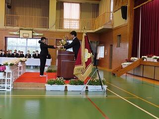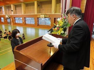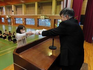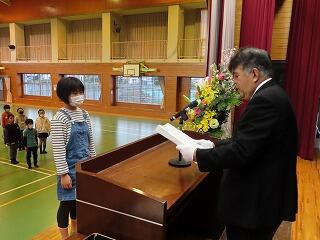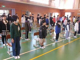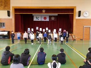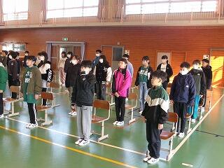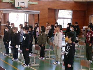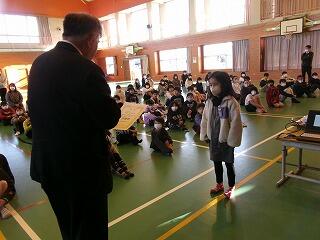 2月26日(月)朝の時間に、全校集会がありました。校長の話では6年生は卒業式まで20日、在校生は修了式まで21日しか登校する日がないことを伝え、1月集会で話した「有終の美」を飾るために何をがんばるか決め、最後の自分の姿を美しくして、次の学年でいいスタートをきろうと話しました。また、世の中で起きた「暴力が原因による引退」についても触れ、相手が嫌がることをやめないと、やることがどんどんエスカレートして歯止めがきかなくなり、最後はすべてを失ってしまうことを話し、最後までのじりっこらしく、友だちを大切にして終わりの日々を過ごしていこうとも話しました。その後、3月の生活目標「けじめのある生活をしよう」については生徒指導主事が「あいさつ、安全、学習、後始末」について、「今さら、今から、今なら」の言葉を提示して、今日からがんばりましょう!と話しました。最後に県トランポリン競技会や市家族の作文コンクールで入賞した児童を紹介し、代表児童を表彰しました。今年度、最後の朝の集会活動でしたが、最後まで話をしっかり聞くとともに、姿勢もとてもよかったです。流石さすが、のじりっこでした!