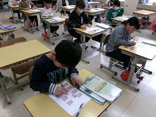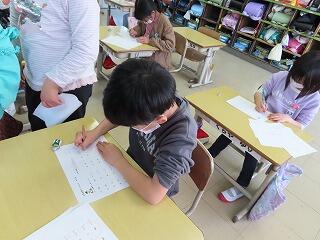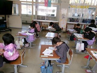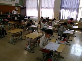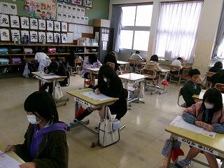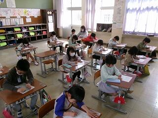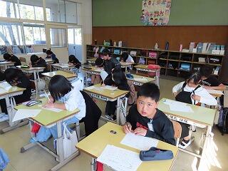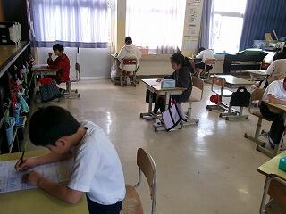 4年生もテストを受けていました。まとめの時期に入るので、これからはテストが多くなると思います。中学年児童は一生懸命に問題と向き合っていました。
