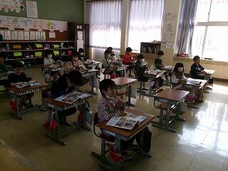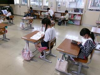 1年生は読書の時間でした。いい姿勢で真剣に本を読んでいますね。すごいです。