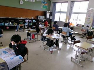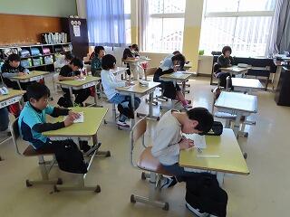 4年生は教室で理科のテストを受けていました。これまでの学習を思い出しながら、正解を導き出そうと一生懸命に問題と向き合っていました!きっと、いい点数をとることでしょう!
