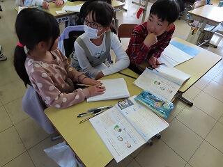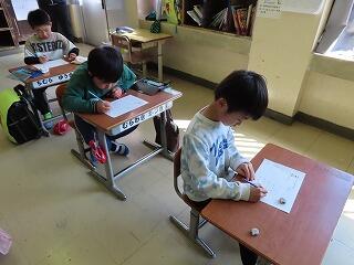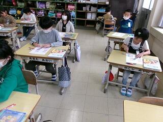 自分で内容を考えて、黙々と書いているのが写真からお分かりだと思います。1年生の保護者の皆様、安心してください。子どもたち!ちゃあんと育っていますよ!