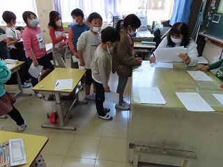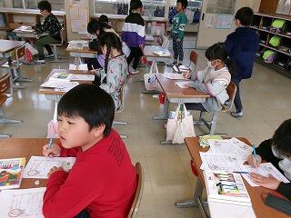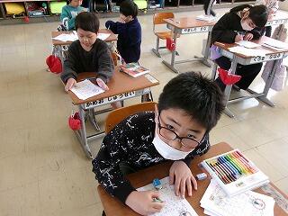 1年生は、来週行われるボランティア感謝集会でお世話になった方々に贈る手紙を書いていました。贈る相手のことを思い浮かべながら、小学校に入学してから覚えた字を使って一生懸命書く姿に感動しました!みんな成長しました!