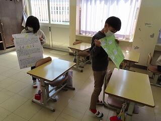 2年生は生活科の時間でした。自分の成長の様子をすごろくや新聞、絵本、巻物など、自分で選んだ方法でまとめていました。どんなまとめ方をしたら自分のことが伝わるか、よく考えながらまとめていました。