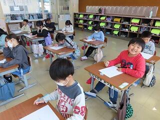 2月28日(水)のもみの木タイムの時間に、次年度からの新しい登校班での顔合わせ会を行いました。地区担当の職員の指導の下、新登校班のメンバーの人員、集合時刻、集合場所や新1年生が入るかどうか等について確認しました。その後、各地区ごとに新しい登校班で集団下校しました。明日からは新登校班で登校します。新登校班体制になっても、今まで通り安全に登校できるといいです。