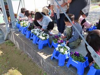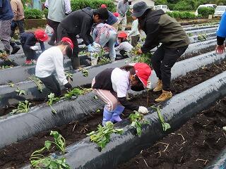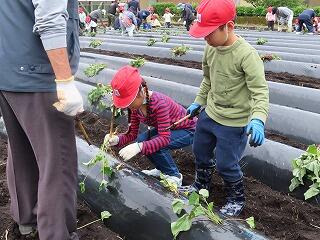 6月12日(水) 今年も田植えの季節がやってきました。今日12日(水)、3年生児童22名が学校近くの田んぼでもち米の苗を植えました。ちょっぴり冷たい田んぼに足を入れると、初は「キャーキャー」と声が聞こえてきます。植えはじめは慣れない手つきでしたが、要領を得ると見る見る上手になっていきます。東麓営農組合の方を中心にたくさんの地域の方に支えられながら今年も無事に田植えを終えることができました。11月の収穫の日が楽しみです。