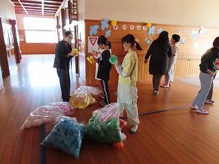 全校レクレーションの様子です。ボーリングにしゃんけん、くじをひいたひらがな1文字から2文字から5文字の単語を制限時間内に見つける言葉遊び、10個の絵の暗記、ジェスチャー、大縄の遊びはどれも楽しかったようです。優勝チームは455点でA-2チーム、2位は417点でD-1チーム、3位は403点でA-2チームでした!