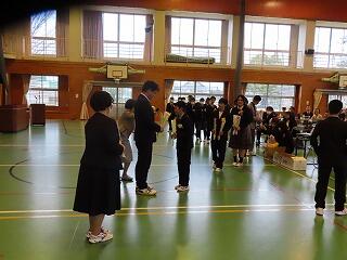 参観授業、懇談会の後は、体育館に全保護者が集まり、次年度の登校班編成を行いました。新しい登校班のメンバーや集合時刻を確認し、新1年生がどの班に入るかなど、各班ごとにしっかり話し合うことができました。
