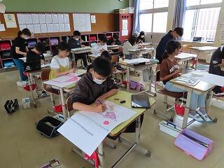 9月18日(水) 5年生の子どもたちが3校時の図工の時間に読書感想画に取り組んでいました。子どもたちは、それぞれが読んだ本から想像した世界を、丁寧に集中して描いていました。まだまだ暑い日が続いていますが、季節はもう秋。野尻っ子には、読書や芸術、運動にも親しんで充実した秋の日々を満喫してもらいたいと思います。