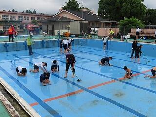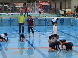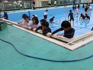 7月9日(火) クラブ活動。今日のスポーツクラブはプールで「水球」に挑戦です。普段の学年での授業では実施しない内容だけに、新鮮味もあり、子どもたちは楽しみながら必死にプールの中でボールを追いかけていました。学年入り交じってのゲームに歓声をあげながらとても楽しい時間をすごすことができました。今年のプールを使った学習もあと2週間ほど。安全に楽しく今年の残りのプールを楽しんでもらいたいと思います。