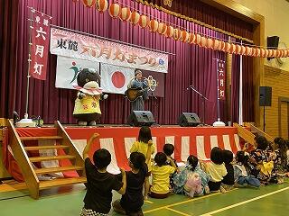 7月16日(火) 先週の13日(土)に東麓の「六月灯」祭りが野尻小体育館で開催されました。前日から雨が降り続き、天候が心配されましたが、祭りが始まるころには雨もやみ、たくさんの方に来ていただきました。歌や踊りなどのステージの他に、子どもたちによるラムネ(ジュース)早飲み大会、お楽しみ抽選会など大盛り上がりの「六月灯」祭りとなりました。多くの来場者の皆様と共に、準備・運営に携わってくださったスタッフに感謝です。