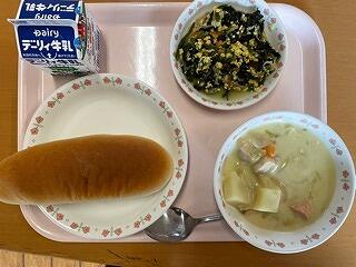 今日はチーズパンでした。やわらかくておいしかったです。トマトと鶏肉はとてもよくあいます。ツナ和えの野菜サラダはシャキシャキおいしかったです。